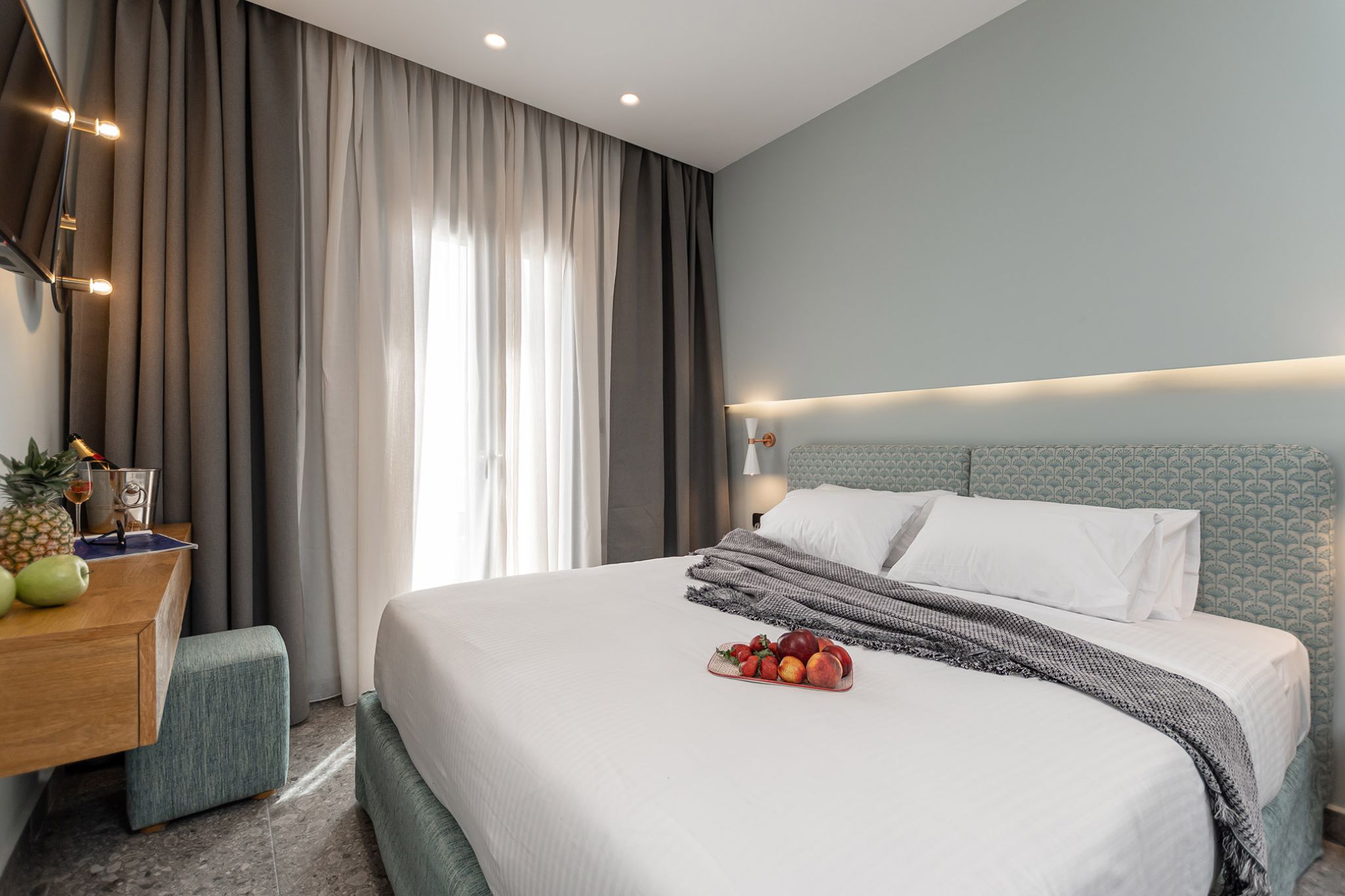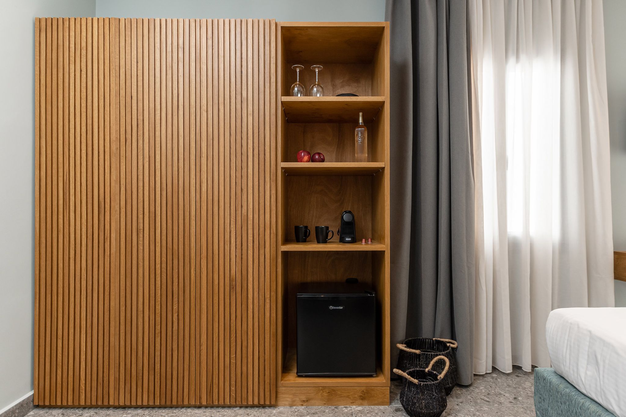 Welcome to Deluxe double/twin room. The architectural marriage of modern and traditional Greek design, create the unique ambience in order to live Naxos special in-life tradition. Our hotel has the pleasure to offer to its guests the very best, that a hotel's room can offer, in order to satisfy the most demanding needs of comfort and luxury within a room. If you prefer to sleep together or separately this room can offer you both options. The room has a splendid view of the city and this makes it an ideal place to relax and contemplate.